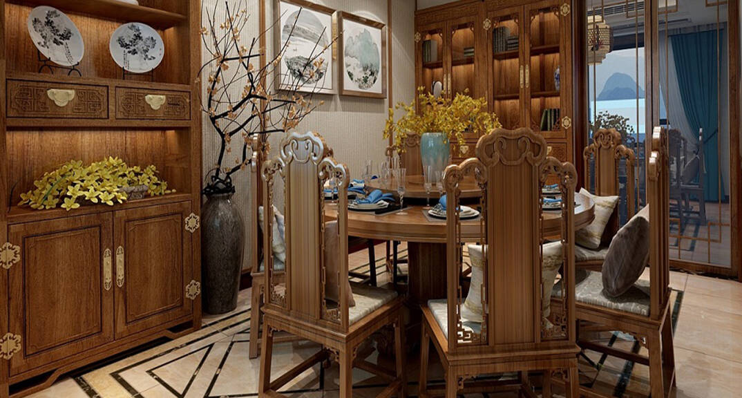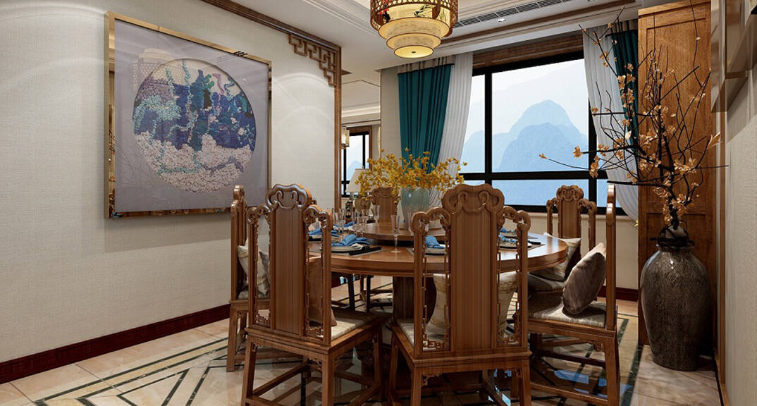 海川泓久山墅635㎡別墅餐廳新中式風格裝修案例效果圖