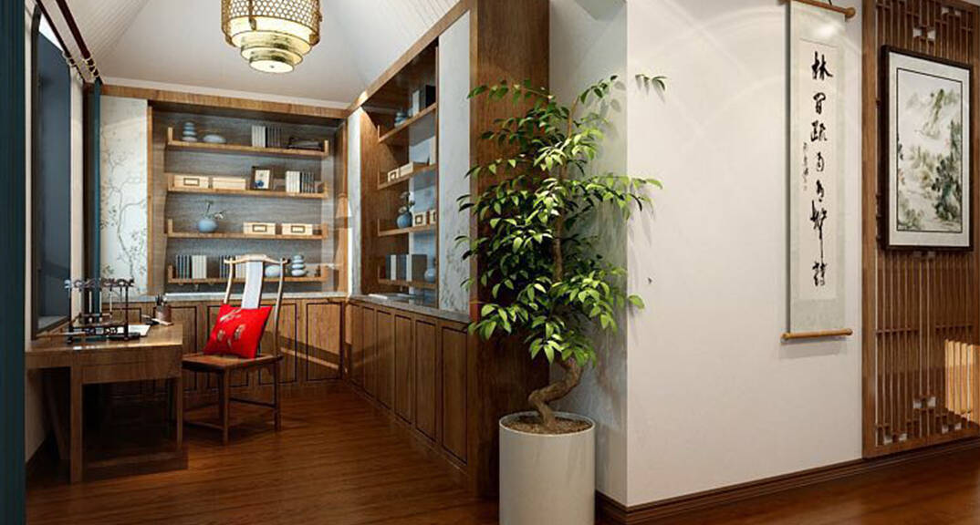 海川泓久山墅635㎡別墅書房新中式風格裝修案例效果圖