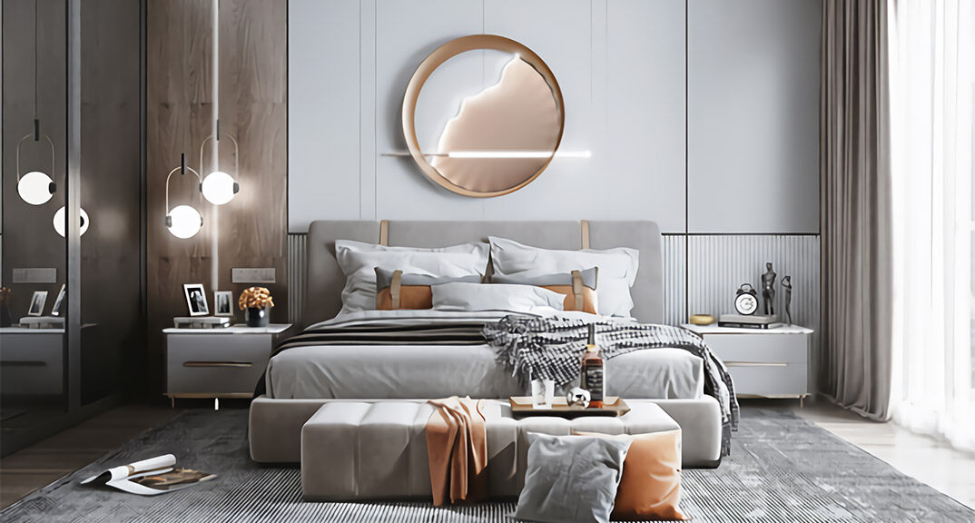 天一仁和瓏樾海125㎡別墅上疊主臥現(xiàn)代輕奢風格裝修研發(fā)效果圖