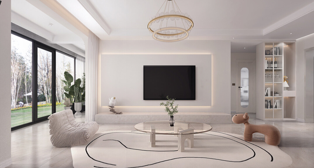 青建依山半島103㎡三室兩廳客廳電視簡約風(fēng)格裝修案例效果圖