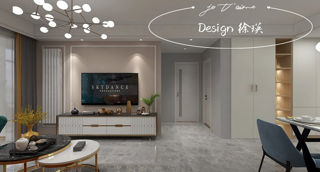 本案為現(xiàn)代風格。用墻板和燈帶使空間更具氛圍。客餐廳區(qū)域多采用墻板及原木色家具增加儲物空間。地面做通鋪的地磚,使空間顯得更通透明亮體現(xiàn)了空間的延展性。