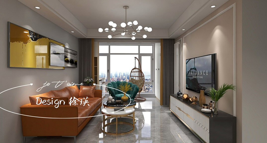 上王埠花園100㎡三室一廳客廳電視現(xiàn)代風格裝修案例效果圖
