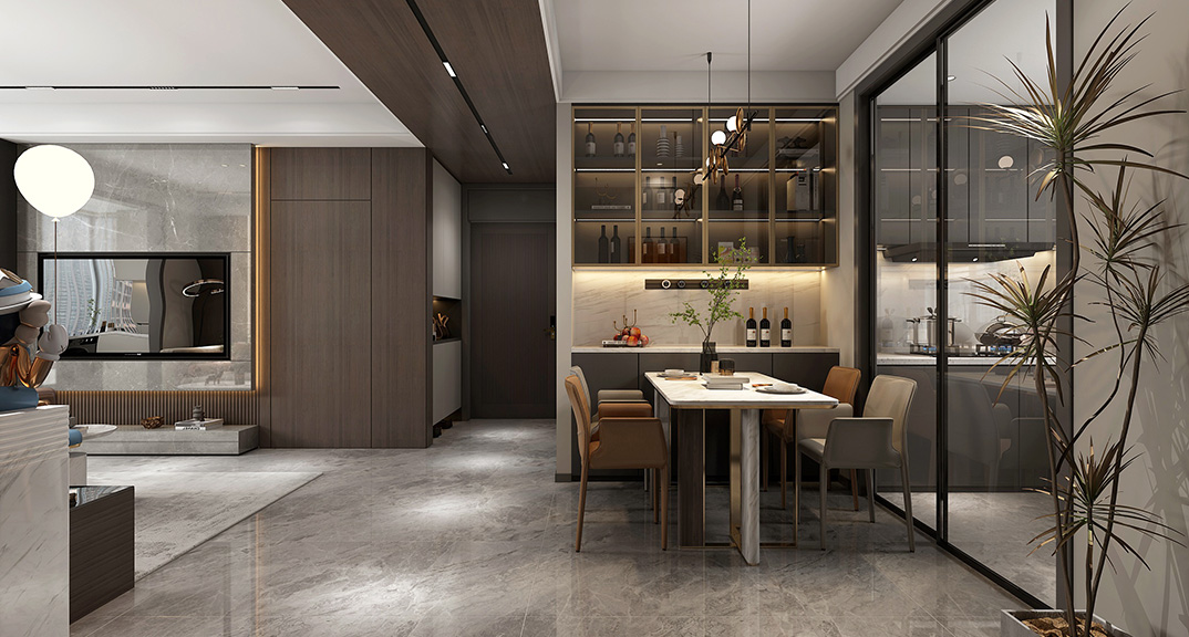 影都壹號(hào)127㎡三室兩廳餐廳意式輕奢風(fēng)格裝修案例效果圖