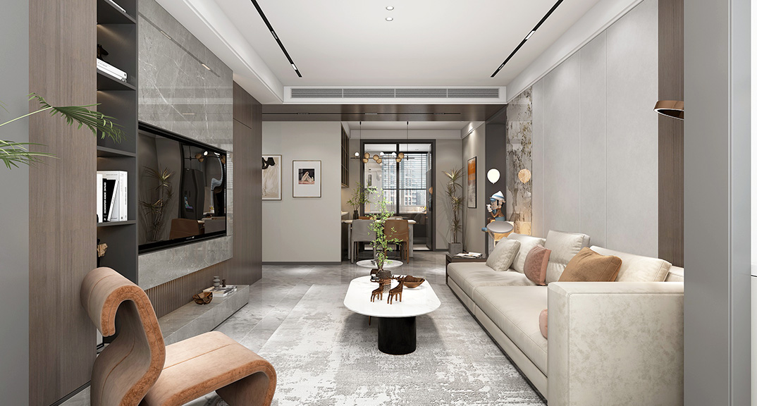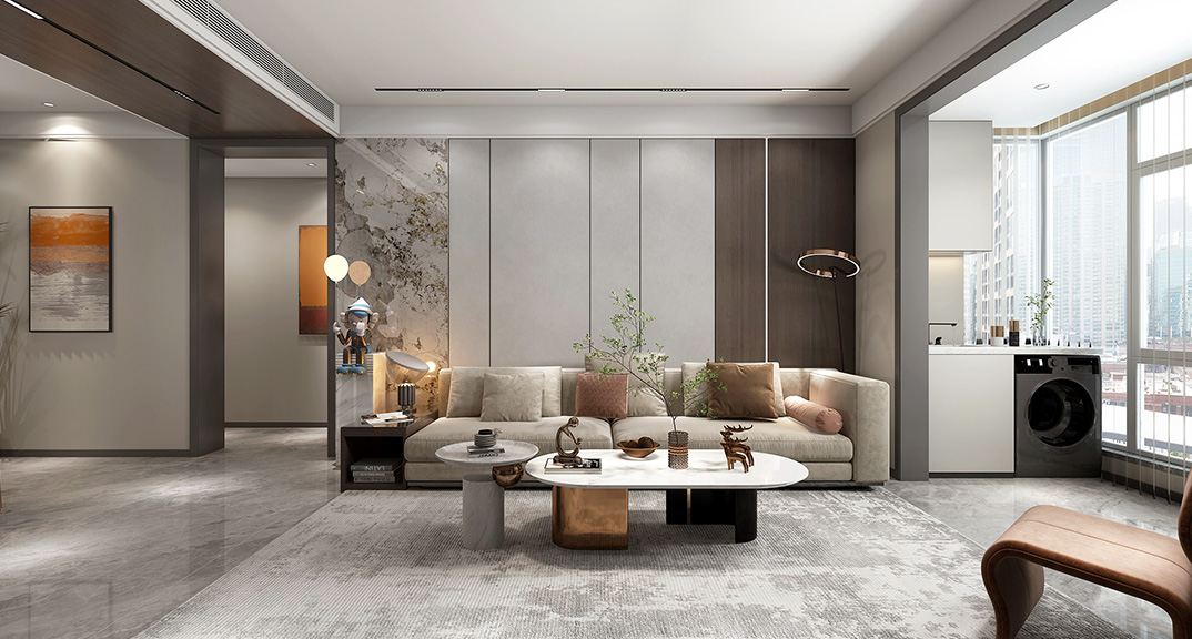 本案設(shè)計(jì)風(fēng)格為意式輕奢,拒絕了濃烈的色彩,以一種簡單、純粹的設(shè)計(jì)語言,回歸生活的本質(zhì),留存給居住者更多生活想象的空間。