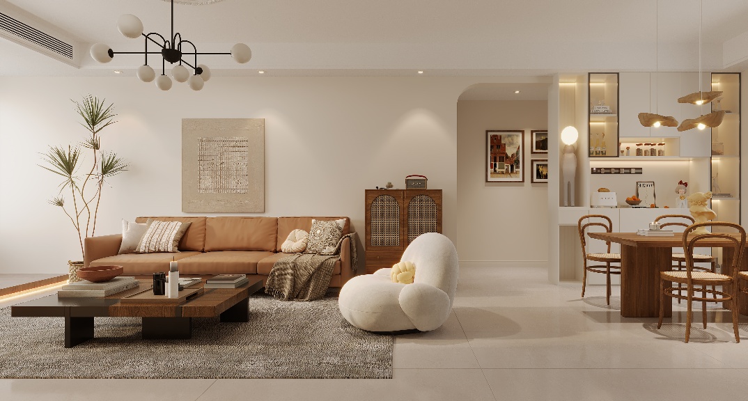 青島裝修效果圖-綠城汀蘭143㎡裝修-中古風(fēng)裝修效果圖-東方家園裝飾