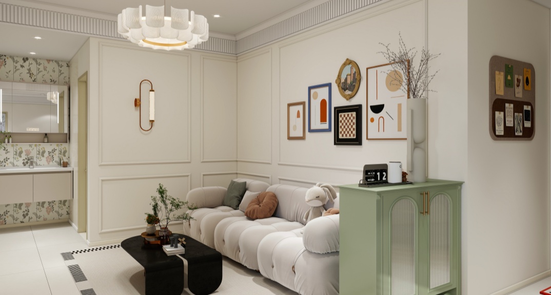 裝修效果圖-海情花園-法式奶油風(fēng)格-青島東方家園裝飾
